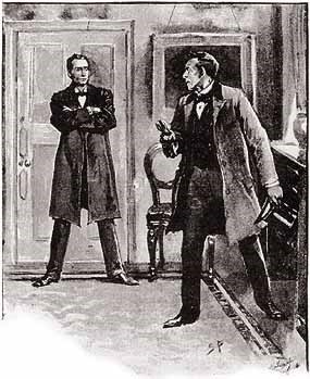 Nia vizitanto jam iom regajnis sian memfidon, dum Holms parolis, kaj li leviĝis de sia seĝo nun kun malvarma rikano sur la pala vizaĝo.