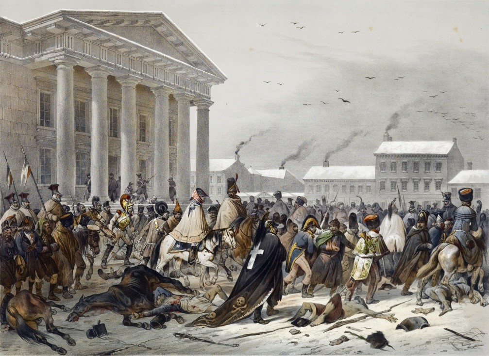 Tiam desaltis de la ĉevalo la duko, polmbatetis lian flankon kaj forgalopis la ĉevalo. Galopis la ĉevalo, peze tremis la grundo sub liaj hufoj. Kaj tiam ekkriis la homamaso: