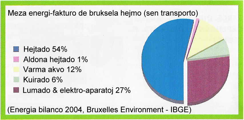 Bruksela familio elspezas meze 55% de sia energibuĝeto por la hejtado. La hejtado estas la ĉefa fonto de karbondioksida radiado el la loĝejoj.