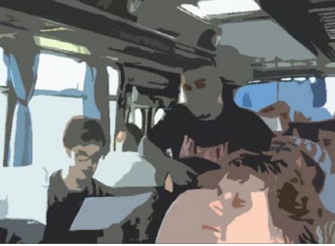 Kaj jen tiu hazarda renkontiĝo en la buso.