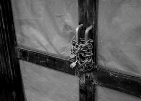 La pordoj glit-malfermiĝis, kaj li eniris la lifton. La ununura alia veturanto kontrolis lin, dum li enpaŝis, kaj poste re-mallevis la kapon. La butono por la tera etaĝo jam lumetis, do li nur apogis je la malantaŭa muro, dum la pordoj fermiĝis.