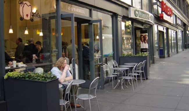Puŝmalferminte la pezan, vitran pordon, mi eniras la kafejon. Feliĉe trafas min brila varmeco kaj la odoro de kafo. Malgraŭ la frua horo la kafejo preskaŭ plenas. Obtuze murmuras multaj voĉoj. Mendante kafon, mi ĉirkaŭrigardas. Ĉe la tabloj geoficistoj babilas pri ĉiutagaj aferoj, politiko, aŭ oficejaj klaĉaĵoj. Pli ol kelkaj studadas siajn porteblajn komputilojn. Preninte mian kafon, mi serĉas sidlokon. Jen kontisto, jen boristo, kiun mi iomete konas, sed mi vidas neniun el mia oficejo, nek direktoron, nek administriston. Tro fruas por ili.