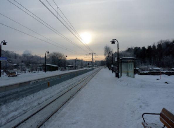 La homoj descendis de la vagonaro kaj ekiris en la neĝo al la eta konstruaĵo. La atendejo de la stacidomo ne estis granda, sed la homoj ne estis multaj. En la mezo de la halo videblis granda hejtilo, eble antaŭ nelonge plenigita per lignoj, bruligitaj, kaj nun la hejtilo bruegis kiel vaporlokomotivo.