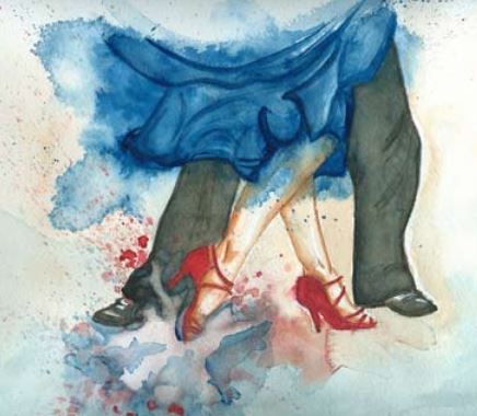 Spontanee li ekstaris kaj prenis ŝin inter siajn brakojn, amplene tiris ŝian kapon kontraŭ la sian kaj ekmoviĝis ritme, dum ŝi sekvis lin, harmonie. Senkonsile kaj senkonsole li turniĝas ĉirkaŭe, piedbatante la pecojn de la rompita disko disen en la ĉambron.
